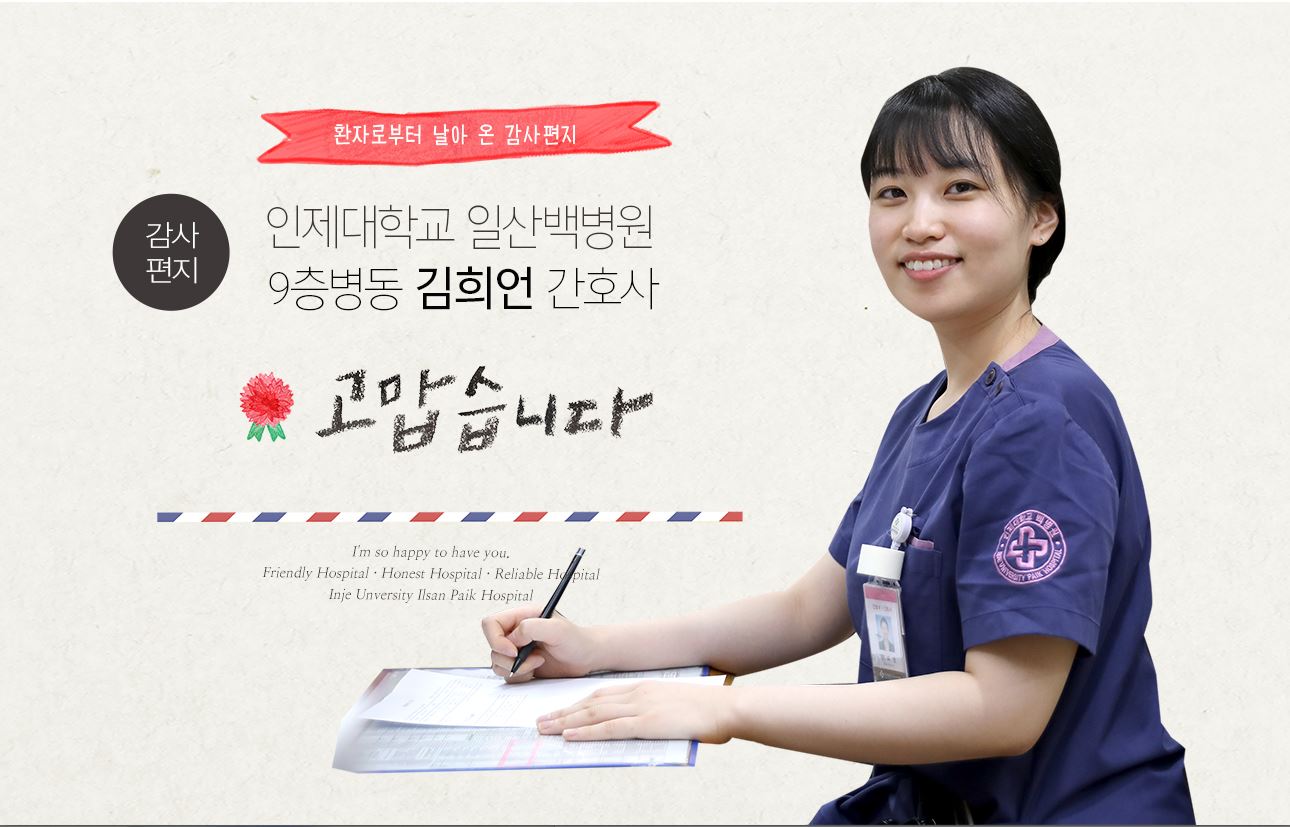 일산백병원에서는 환자와 보호자들이 보내온 '감사편지'를 게재하고 있습니다.
